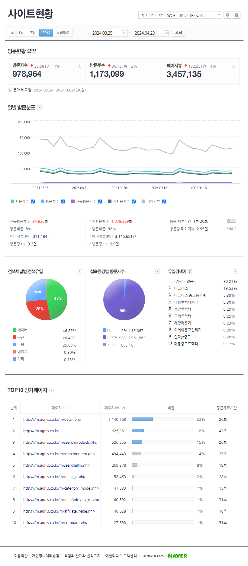 | 농기계 포털사이트로서, 본 사이트를 방문하는 고객은 농민과 농기계 업종 종사자이므로 집중도가 매우 높습니다.
